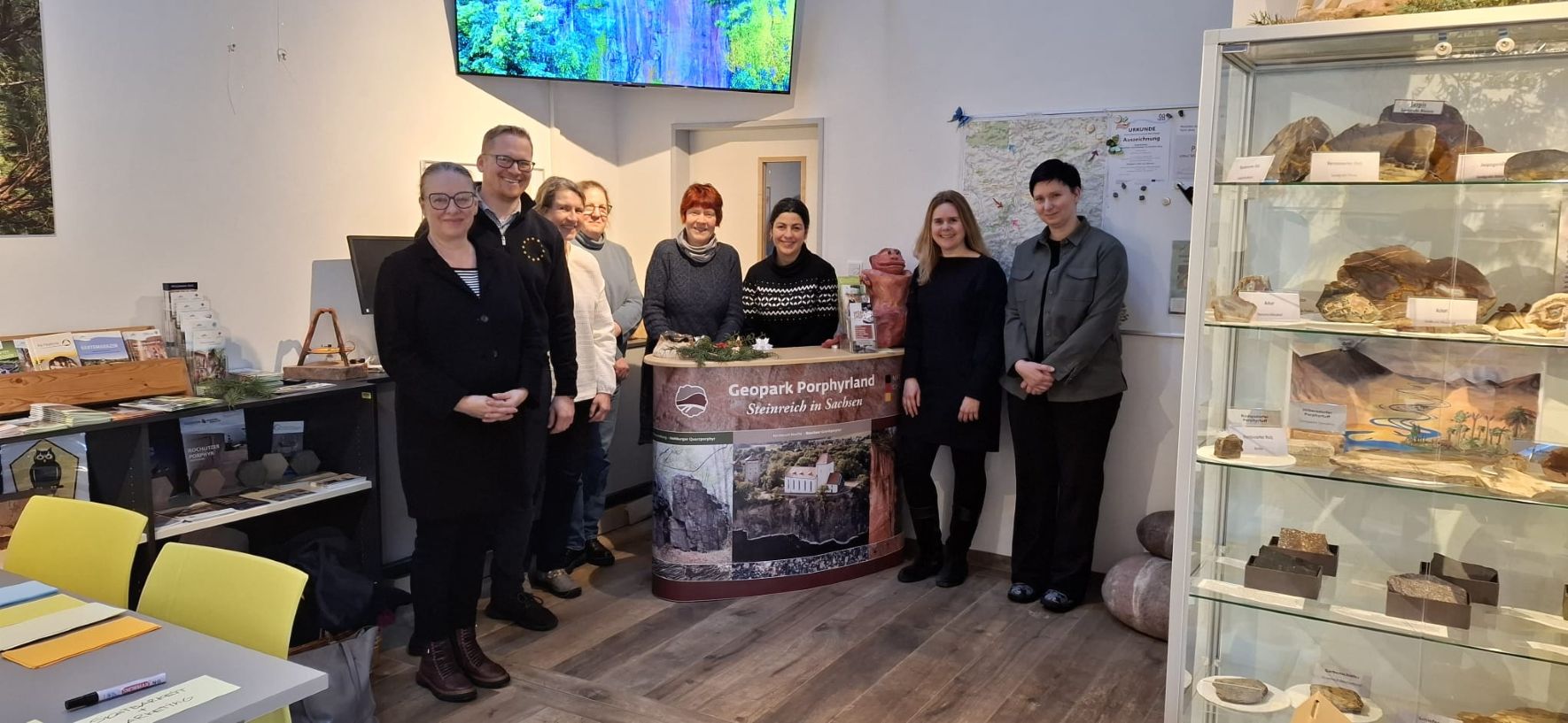 Unser Geopark Porphyrland hat in den letzten Jahren eine beachtliche Entwicklung gemacht: GeoRanger, Geoportale, Routen, Netzwerke, GeoGenuss oder GeoKultur. Die vier LEADER-Regionen Land des roten Porphyr, SachsenKreuz+, Sächsisches Zweistromland-Ostelbien und unser Leipziger Muldenland unterstützen den Geopark schon mehr als 10 Jahre mit einer Kooperation. Regelmäßig tauschen wir uns deshalb über die aktuellen Entwicklungen und Projekte aus und beraten, wo wir unterstützen können. Zu Beginn des Jahres trafen wir uns deshalb im Geoportal Rochlitzer Berg. Danke für den wichtigen Austausch! Übrigens: Die Geopark-Entwicklung gehört zu unseren Fokusthemen der LEADER-Entwicklungsstrategie.